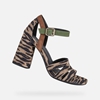 Designed for audacious women, these Genziana sandals will inject instant personality into any casual or leisuretime look. Crafted from animal-printed suede and fastening with a contrasting strap, they sit atop a sexy yet comfortable squarish high heel.