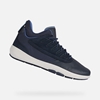 The result of continuous research by Geox, the Modual ABX sneaker is the epitome of high-tech design, delivering extraordinary performance in all conditions, even on the wettest of days. Comfortable and practical, with a water-repellent upper in tumbled leather and navy-blue nylon, with contrasting air-force blue details, it has a contemporary design for crossover appeal and easy matching with leisuretime and everyday casual looks. Featuring a high-tech removable sock liner that uses the Inner Breathing System and waterproof Amphibiox technology for unparalleled comfort. The high-performance credentials of the Modual ABX mid-cut sneaker don't end when the rain comes thanks to the innovative waterproof sock liner, which fastens via a practical attachment system at two points on the shoe. The incredibly breathable sneaker is perfect for sunny days too, if worn without the waterproof sock liner and inserting the footbed provided, which is covered in leather for a constant sensation of dryness.